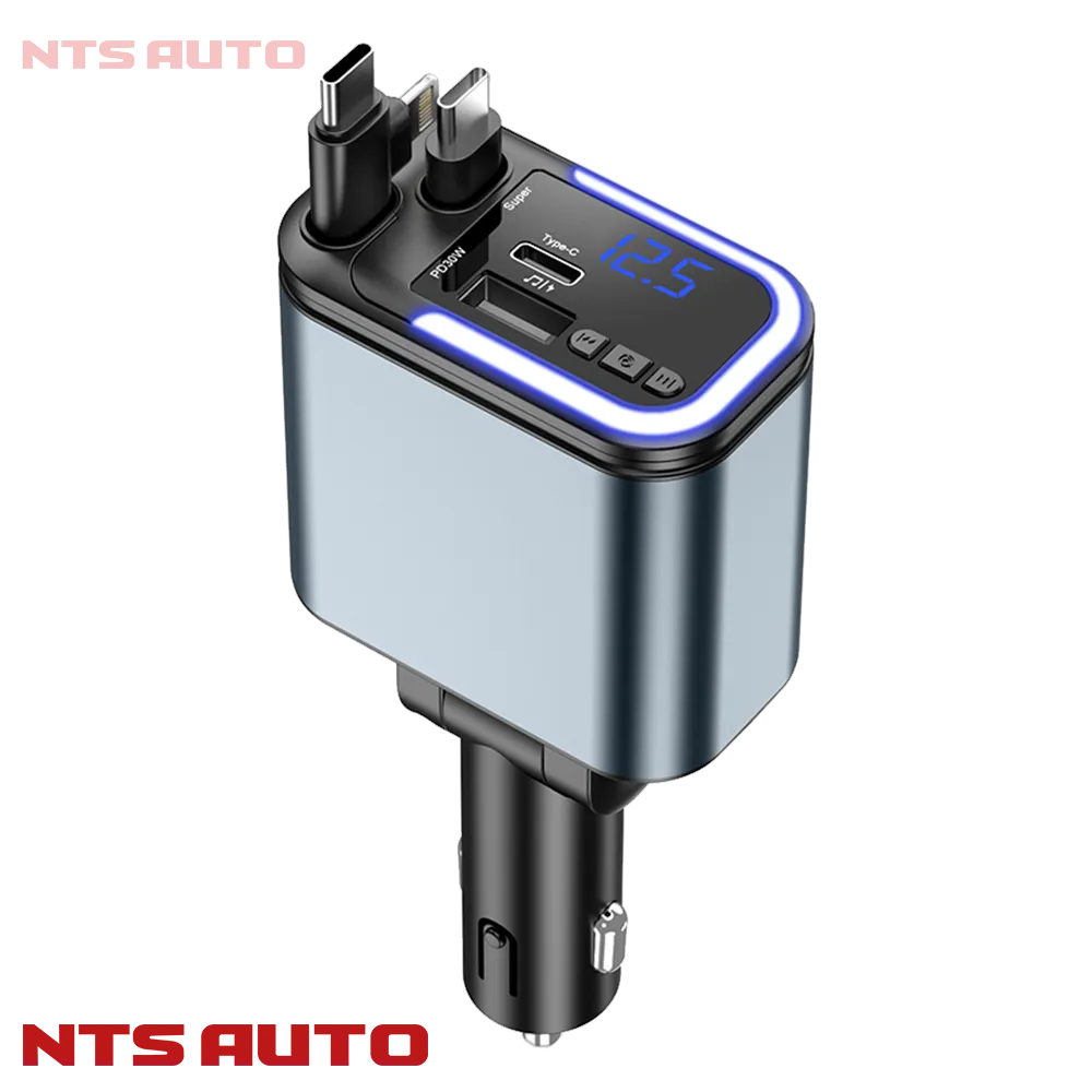 Это автомобильная зарядка в прикуриватель для водителей, которым нужно заряжать несколько устройств без лишних проводов по салону. Модель подойдет для смартфонов с Type-C и Lightning, а встроенный вольтметр помогает контролировать состояние бортовой сети.